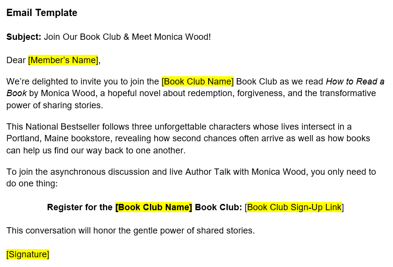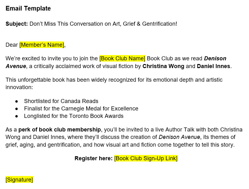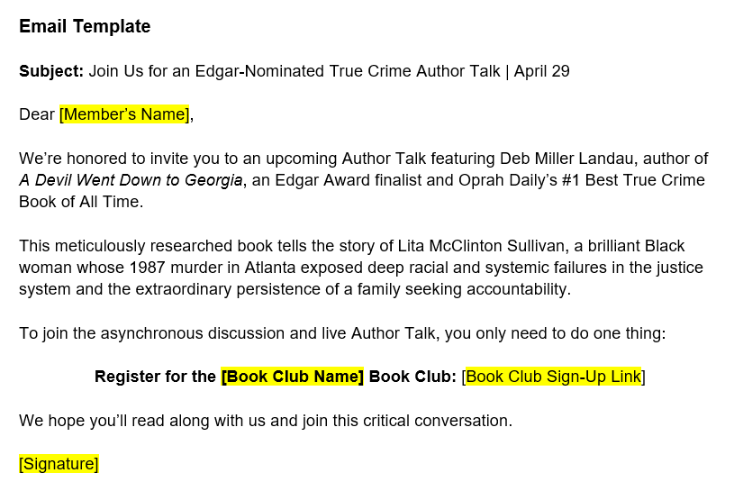 We will post downloadable materials before each reading period, allowing you to send out your own marketing and promote the upcoming author talks.